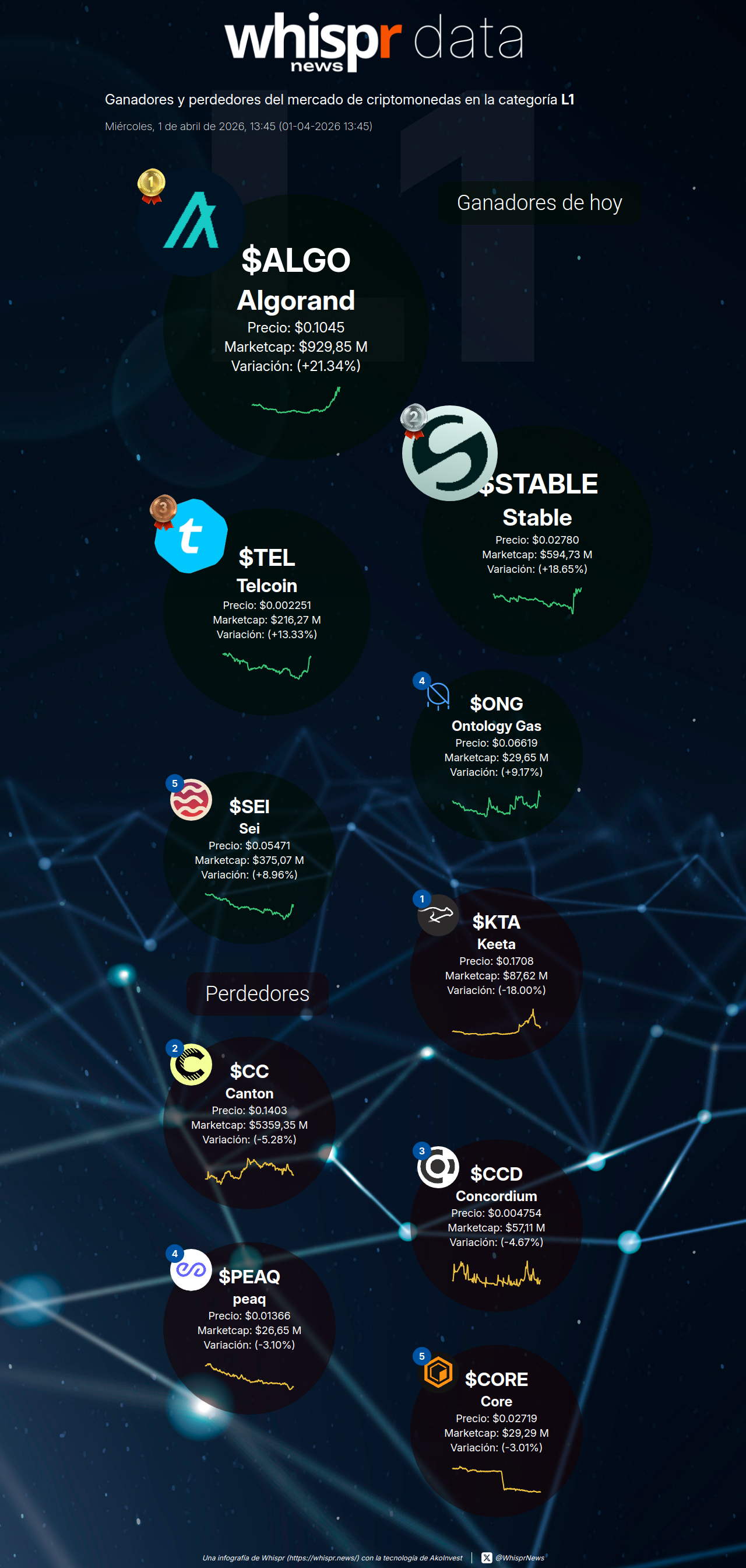 📈 Ganadores de hoy en la categoría #NFT (31-03-2026) Kadena $KDA +34. 51% (@KdaCed) Hashflow $HFT +10.78% (@hashflow) inSure DeFi $SURE +9.16% (@InsureToken) trac (Ordinals) $TRAC +4.20% (@origin_trail) Eesee $ESE +2.96% (@eesee_io) 📉 Perdedores de hoy DAR Open Network $D -18.26% (@DarOpenNetwork) Baby Shark Universe $BSU -15.13% (@BSUniverse_OFCL) World of Dypians $WOD -10.06% (@worldofdypians) Echelon Prime $PRIME -9.61% (@EchelonFND) Gods Unchained $GODS -8.56% (@GodsUnchained) https://res.cloudinary.com/db5i3inqr/image/upload/v1774961330/nostr-posts/object_Object_wl.png